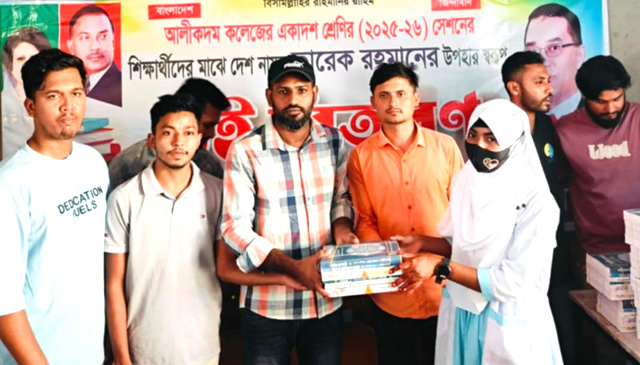 বান্দরবানের আলীকদম উপজেলায় ছাত্রদলের উদ্যোগে বাংলাদেশ জাতীয়তাবাদী দল বিএনপি’র ভারপ্রাপ্ত চেয়ারম্যান তারেক রহমানের উপহার স্বরুপ সদ্য আলীকদম কলেজের একাদশ শ্রেণির (২০২৫-২৬) সেশনের ছাত্র-ছাত্রীদের মাঝে বই বিতরণ করা হয়।