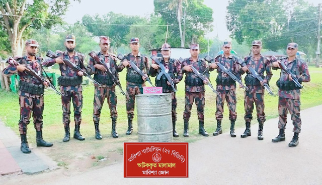 আজ বৃহস্পতিবার (২৩ এপ্রিল ২০২৬) মারিশ্যা ব্যাটালিয়ন (২৭ বিজিবি)র অধিনায়কের নির্দেশক্রমে সহকারী পরিচালক মোহাম্মদ হাফিজুর রহমান, বিজিবিএমএস এর নেতৃত্বে একটি টহল দল মাঝিপাড়া সীমান্ত সড়ক এলাকায় অভিযান পরিচালনা করে। উক্ত অভিযান পরিচালনাকালীন উগলছড়ি এলাকার রাস্তার উপর অজ্ঞাত অসাধু ব্যবসায়ী ২০০ লিটারের ০১টি জ্বালানী পেট্রোলের ব্যারেল ফেলে পালিয়ে যায়, বিজিবি টহল দল জ্বালানী পেট্রোল উদ্ধার করতে সক্ষম হয়। জব্দকৃত পেট্রোলের সিজার মূল্য ২৮ হাজার টাকা।
